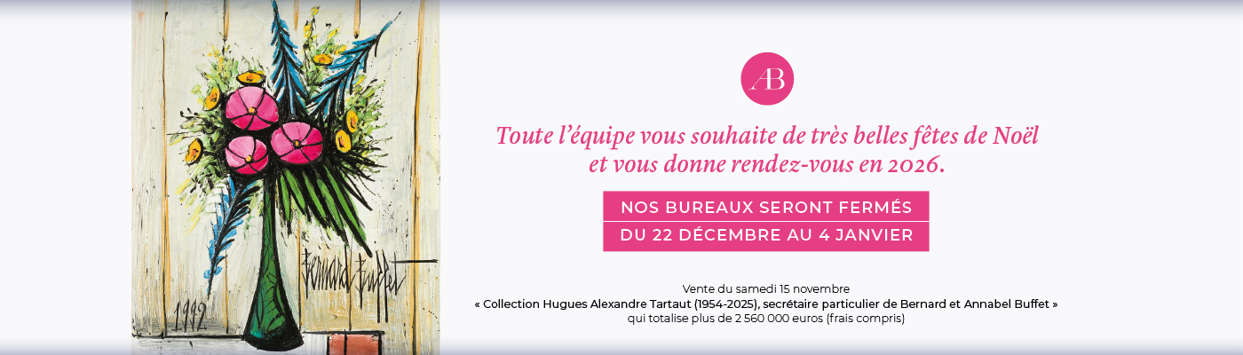 La présentation en vente publique de ce remarquable ensemble d’œuvres de Bernard BUFFET (1928-1999) s’inscrit dans le cadre de la succession de M. Hugues Alexandre TARTAUT (1954-2025), secrétaire particulier et ami de Bernard et Annabel BUFFET.